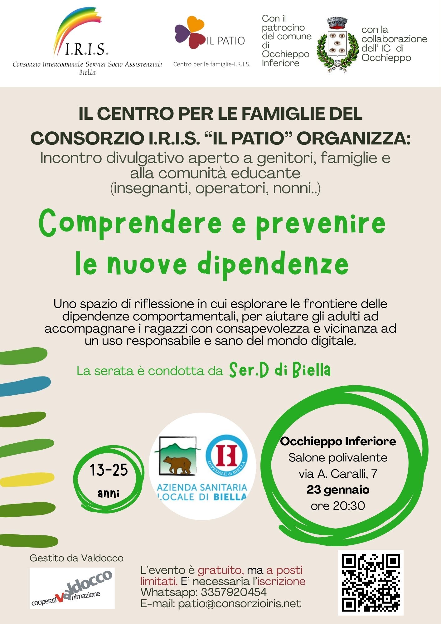Il Centro per le famiglie del consorzio I.R.I.S di Biella è lieto di invitarvi a due appuntamenti formativi gratuiti rivolti a genitori, insegnanti, educatori, operatori e tutta la comunità educante del territorio.