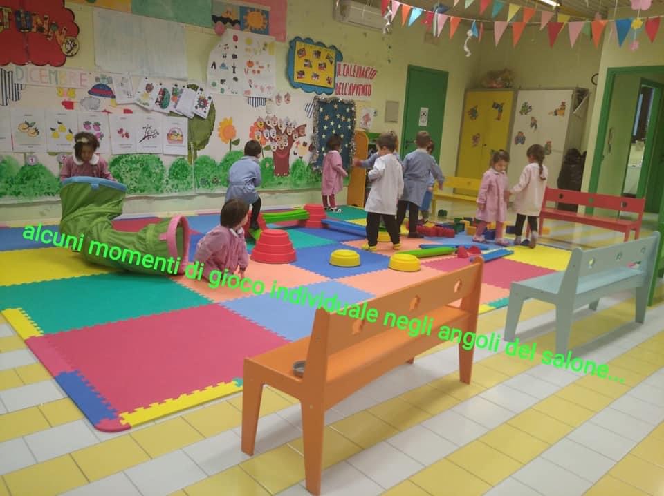 La Scuola dell’Infanzia è organizzata con una mono sezione, può ospitare fino ad un max di 28 bambini. E' strutturata con: ampio salone per le attività motorie ed il gioco libero; aula per attività didattiche, dormitorio accogliente per i più piccini, un angolo morbido, il refettorio per la mensa ed i bagni. La scuola è immersa in un ampio giardino attrezzato con giochi e molto verde dove i bimbi possono trascorrere il loro tempo in sicurezza.