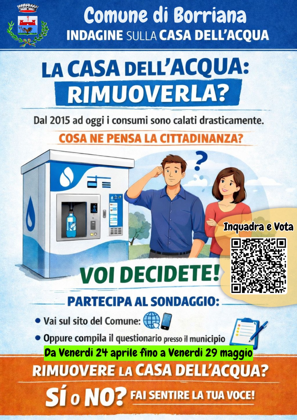 A fronte dei continui interventi manutentivi di carattere straordinario e dei costi in costante aumento richiesti dal fornitore del servizio, nonché considerata la diminuzione dei consumi, si ritiene opportuno avviare un’indagine tra i cittadini.