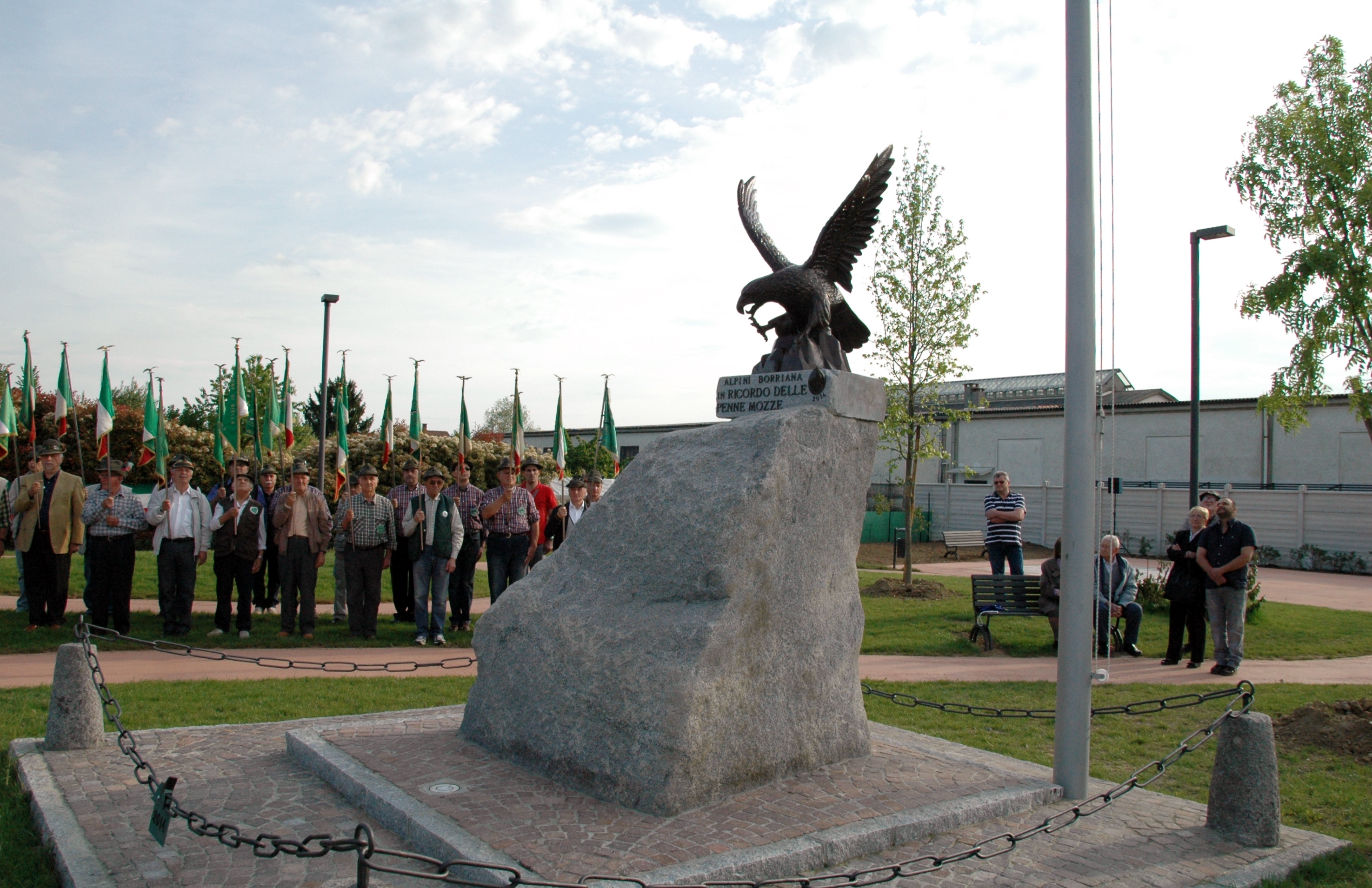 Negli anni gli alpini di Borriana hanno abbellito il sagrato della Chiesa di San Sulapizio, hanno costruito il monumento ai caduti nel Giardino San Francesc di via Durando Nelson.